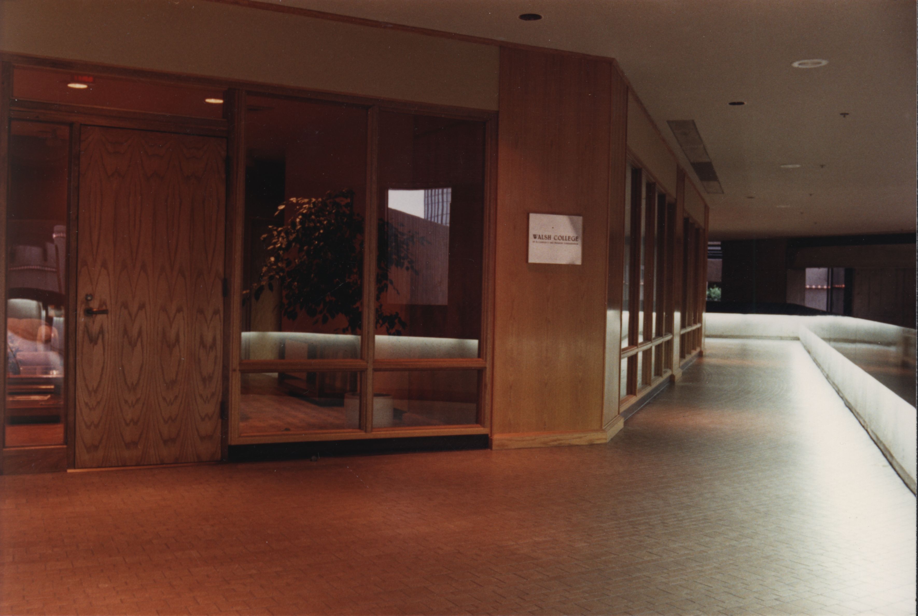 The hallway outside the Walsh College Office in the Renaissance Center.
