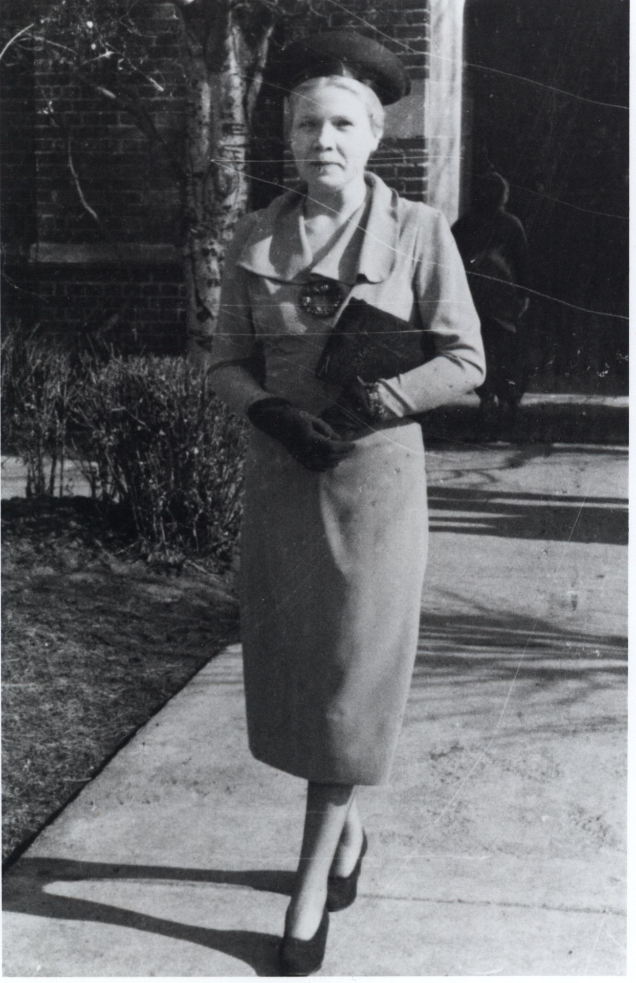 Elsie Walsh, second wife of founder Mervyn Walsh. Leaving the school she taught at in Detroit in 1937. (from back of photo)