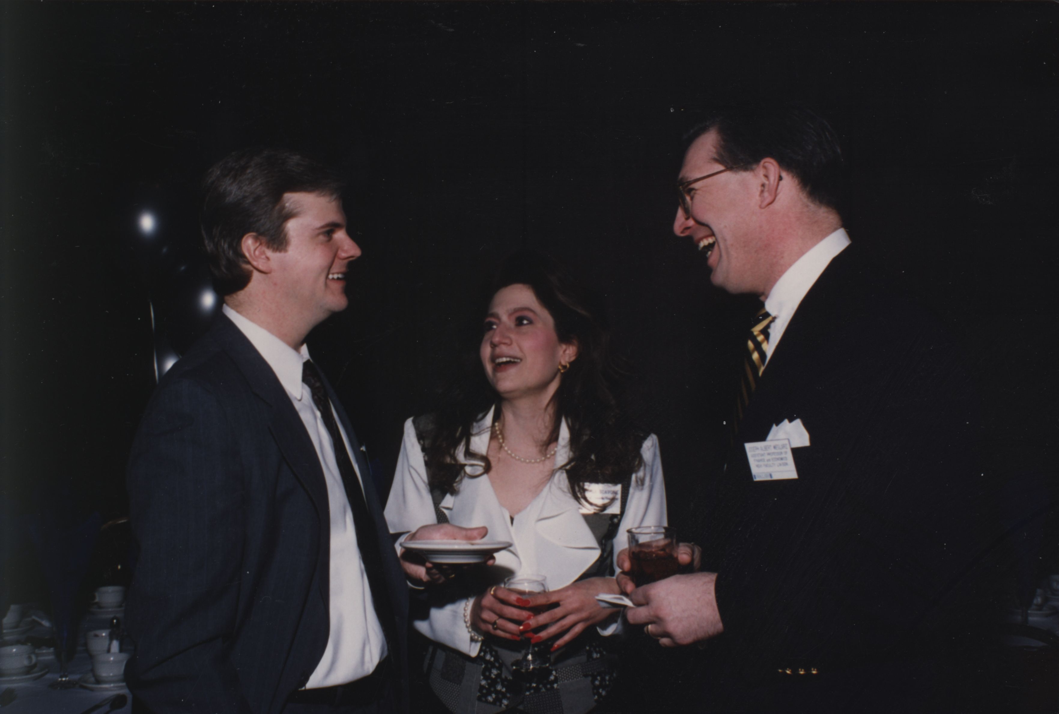 Professors of Economics and Finance Joseph Weglarz, James Bennett, and a woman at the 25th CC Luncheon, combined MCC/OCC (from back of photo)