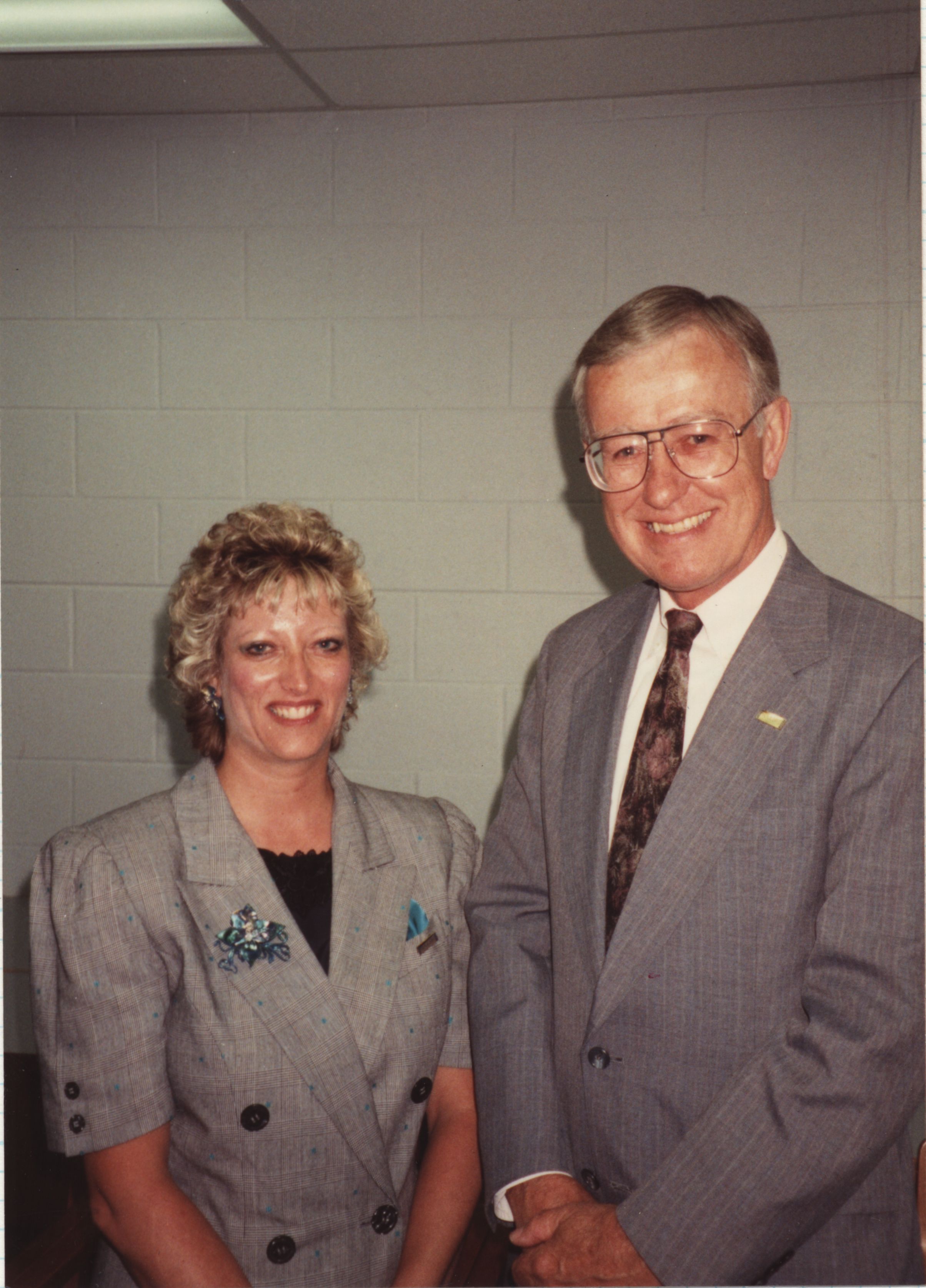 Marla Scafe and Thomas E. Courneya present and past Dean of Academics (from back of photo, date unknown)