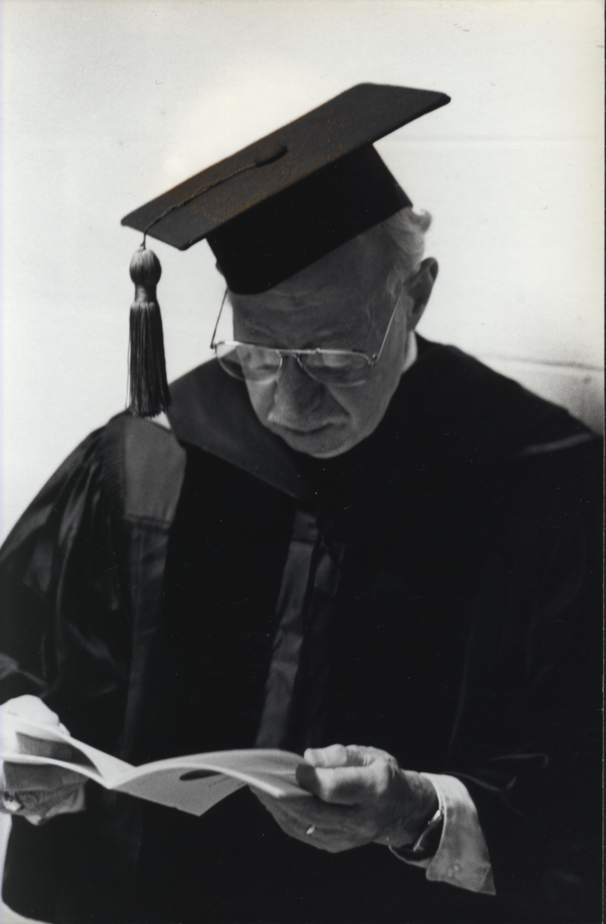 QM and Management Professor Ernie Shaw at a commencement. (date unknown)
