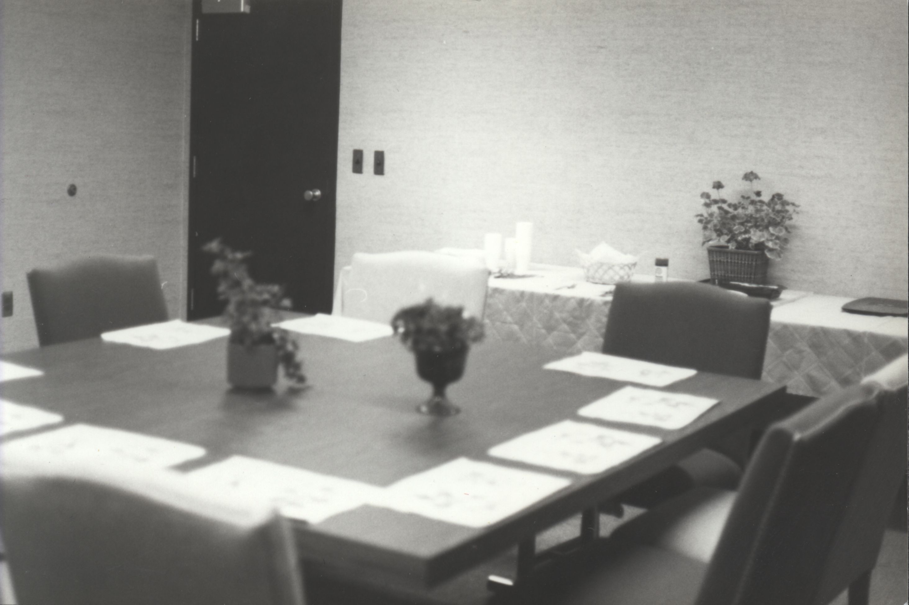 A conference room set up for a meeting. (date unknown)