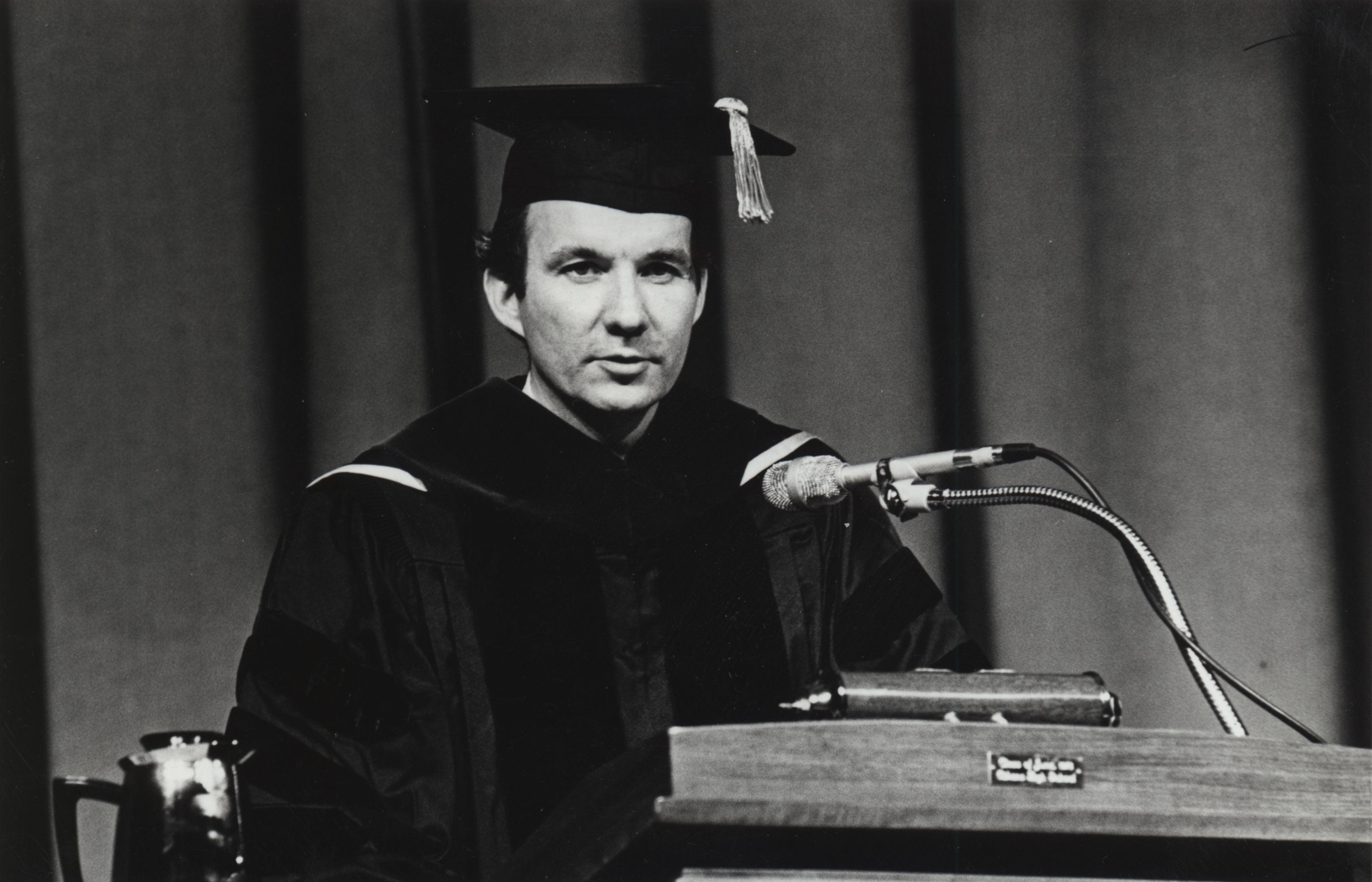 Jeff Barry (3rd President) speaking at a commencement ceremony. (date unknown)