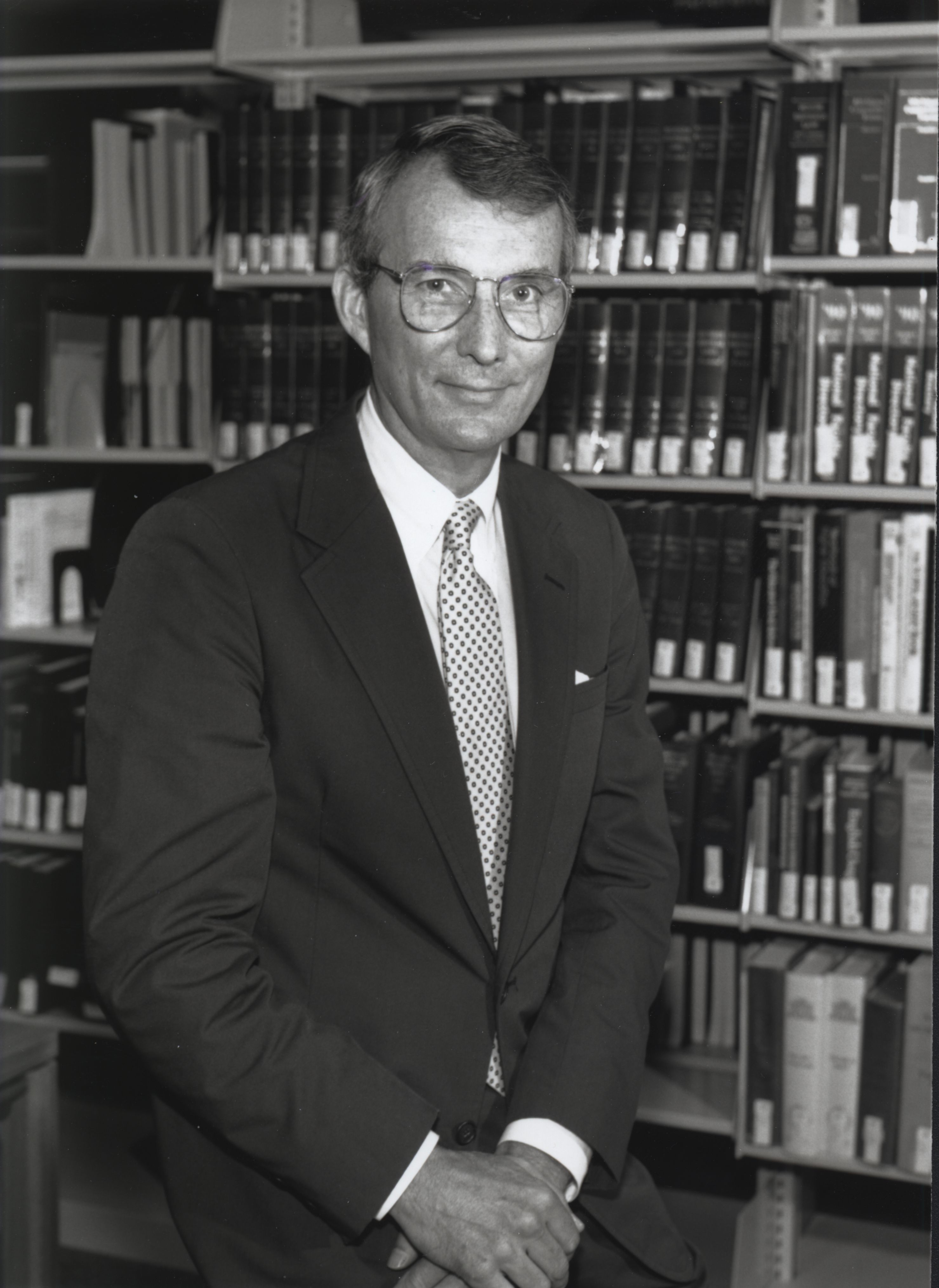 Jeff Barry (3rd President) in the Walsh library. (date unknown)