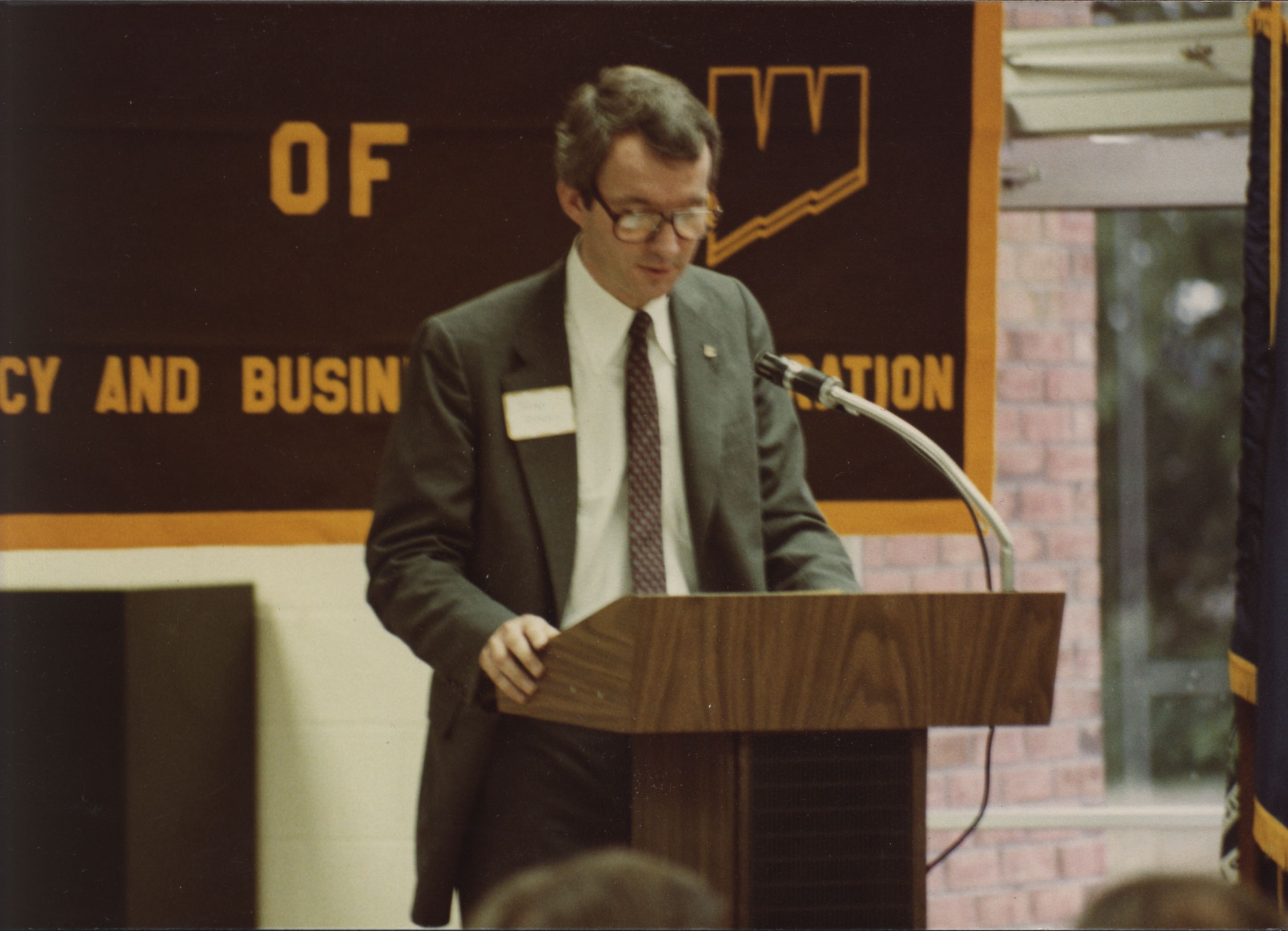 Jeff Barry (3rd President) giving a speech. (date unknown)