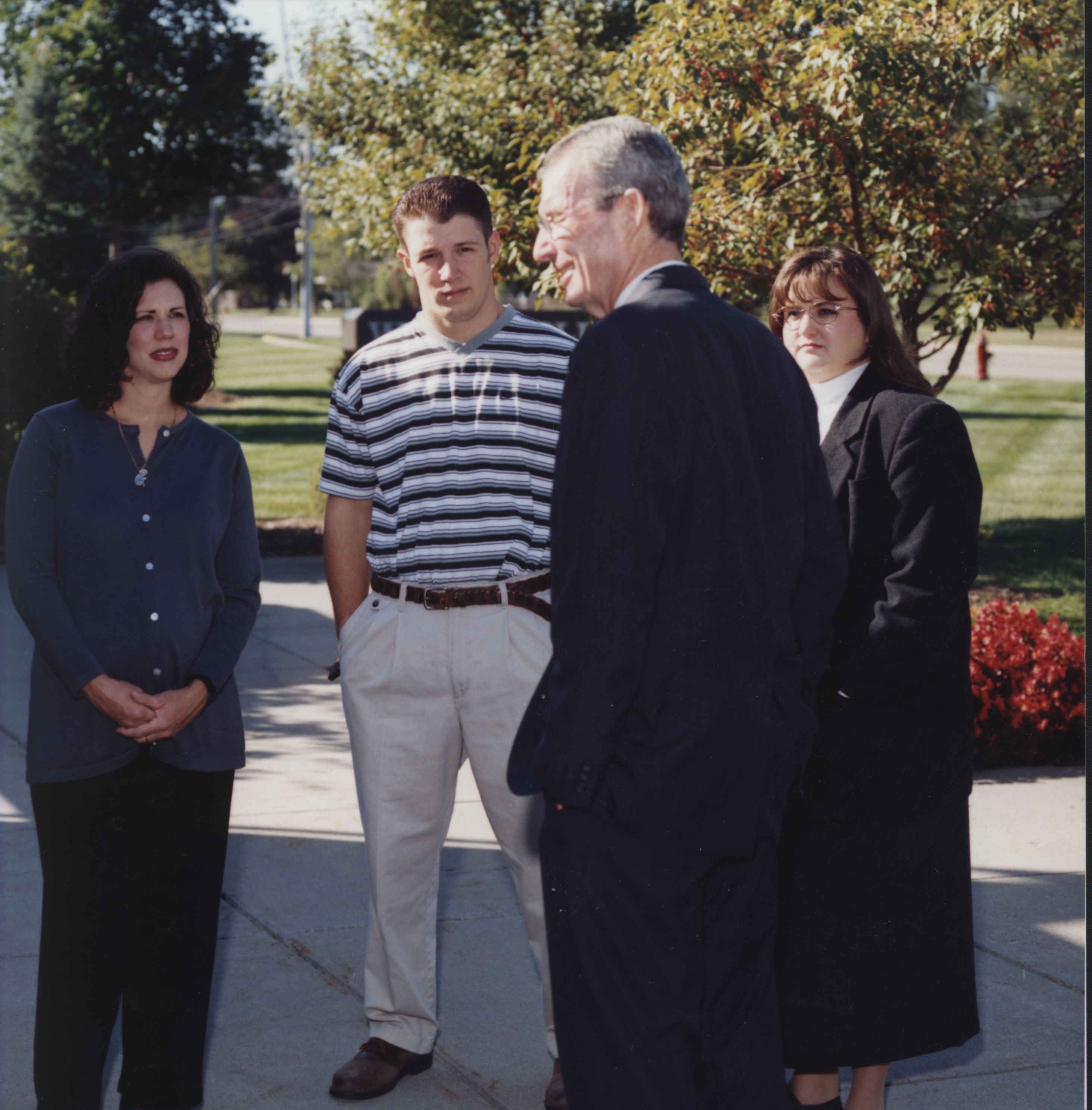 Jeff Barry (3rd President) speaks to a group of people outside. (date unknown)